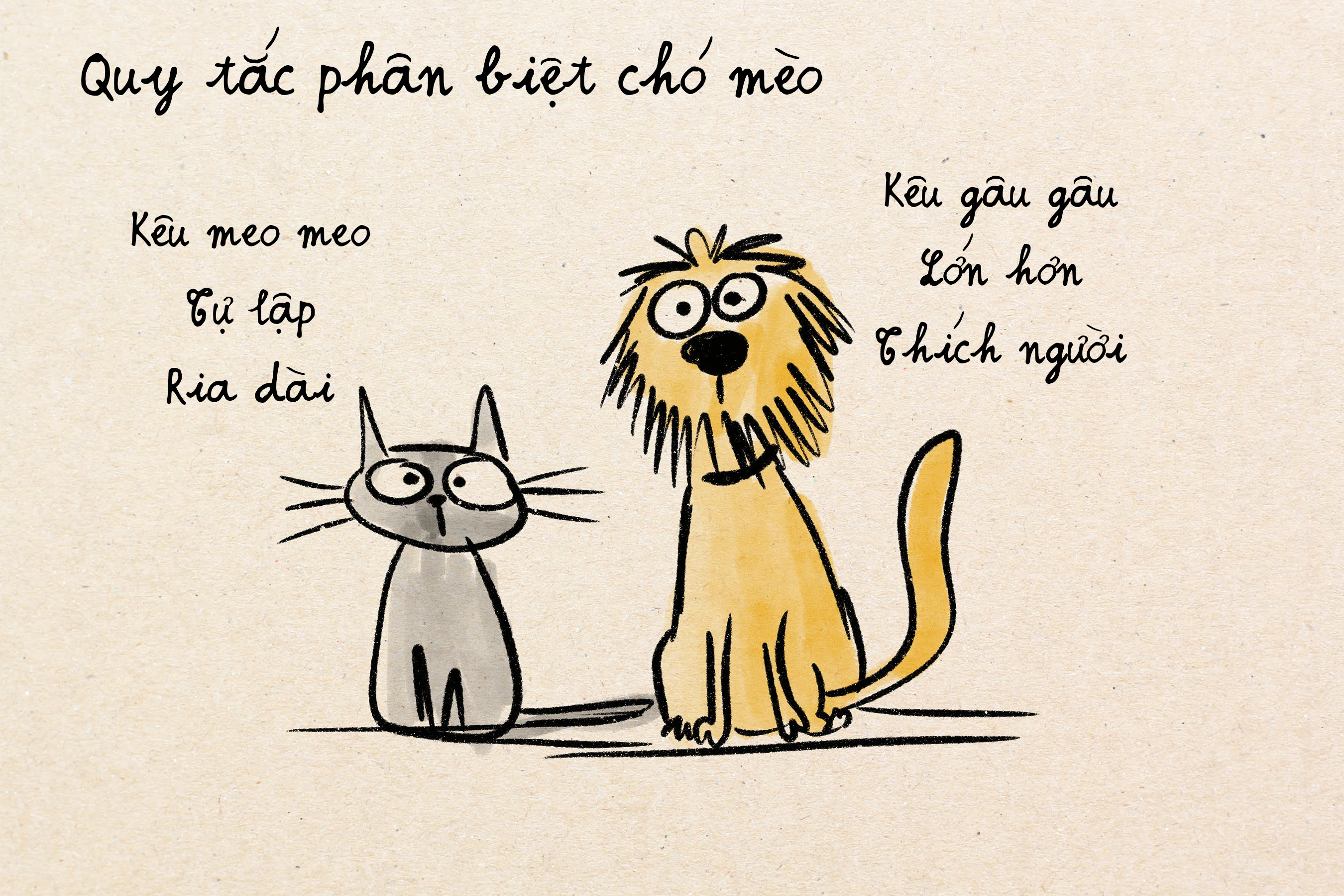 Cách mọi người hay dùng là dạy trẻ "quy tắc cứng nhắc" như "Chó thường sủa, thường lớn hơn và có lông dài hơn mèo, thích ở gần người hơn". Còn mèo thì "hay kêu Meow, thường thích tự lập và có ria dài hơn, etc." Ngay cả những quy tắc như thế này vẫn có lúc sai. Có những con chó không thích sủa, thích tự lập, nhỏ, và lông ngắn. Cũng có những con mèo thích gần người, lông cực dài, v.v. Quy tắc cứng nhắc thường dễ có trường hợp bị sai.